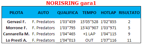 In gara1 partono bene sia Lo Presti che Morrone, subito riescono a guadagnare posizioni. Poi Morrone ne perde un paio ma recupera nuovamente e conclude al 9° posto dietro Lo Presti. Cannarella invece parte male e perde due posizioni che recupera subito, ma sbaglia a mettere carburante e resta a piedi a metà gara.